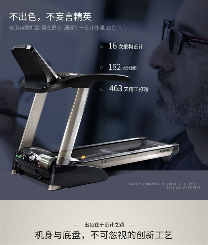 舒华家用万搏买球官方网站 SH-T6700(X6)采用18T+12T双层跑板,T2.2mm钻石纹的跑带,双层跑板全跑台减震,对您跑步中的膝盖进行全方位的呵护,选用接触式心率感应和无线心率感应等多种方式获取数据,跑步面积达520×1450mm,可承受130kg的使用者使用。