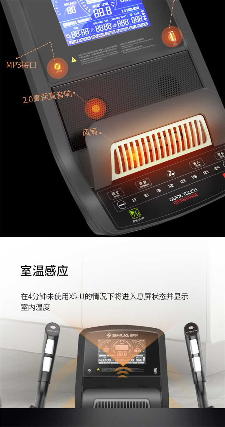 舒华高端万搏买球官方网站 SH-T9100T(V10+)拥有超大高清32寸10点触控晶屏的工业屏,具有扫码、刷卡、人脸识别等多种智能登录方式,方便快捷,并且有在线教学、专业健身模式随意切换,让您开启科学健身。