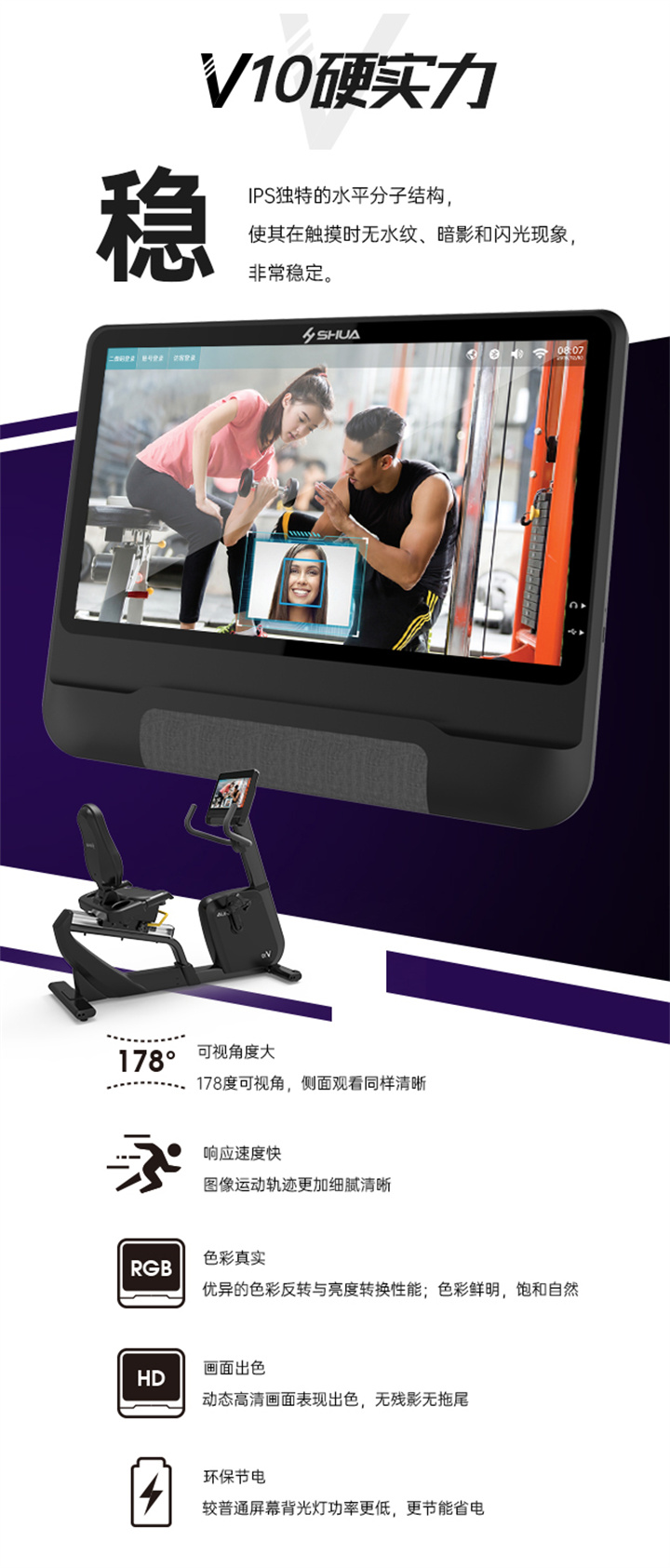舒华高端万搏买球官方网站 SH-T9100T(V10+)拥有超大高清32寸10点触控晶屏的工业屏,具有扫码、刷卡、人脸识别等多种智能登录方式,方便快捷,并且有在线教学、专业健身模式随意切换,让您开启科学健身。
