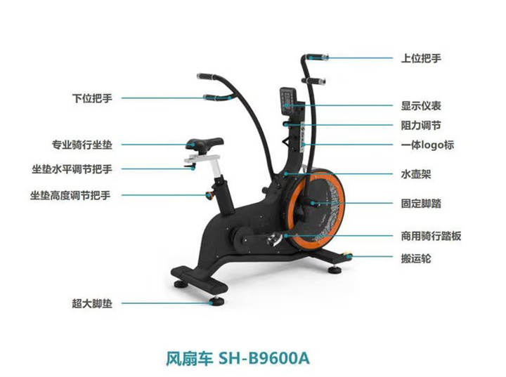 舒华卧式商用健身车SH-B9100U(V10)采用自发电,40段电磁控阻力系统,9.3kg飞轮重量。