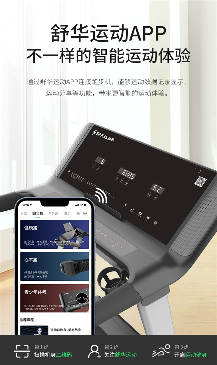 舒华I5智能家用万搏买球官方网站 是由舒华体育联合中国体育科学学会、上海体育大学运动科学学院教授陆大江等权威机构、专家共同研发设计。独特之处在于它结合国际科学跑步研究理论,能够针对不同用户进行运动能力测试,并根据测试结果生成因人而异的有氧运动处方。这意味着每个用户都能得到一个适合自己的运动方案,从而更好地达到运动效果。这一创新技术可以确保用户在运动过程中能够保持在最佳的区间状态,从而提高运动安全性和有效性。